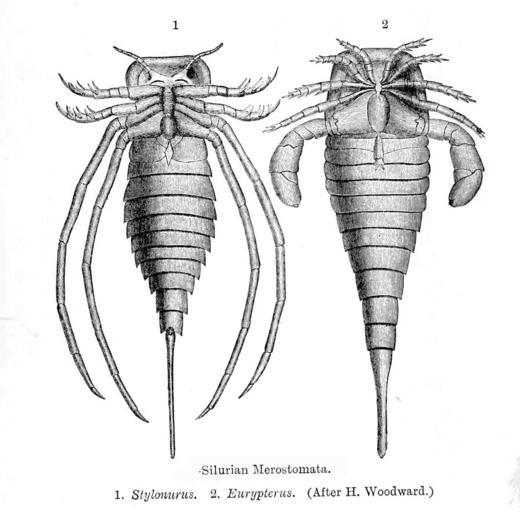 Keywords: Eurypterids.jpg Eurypterids http //archive org/stream/extinctmonstersc00hutc page/56/mode/1up Rev H N Hutchinson 1910 Extinct monsters and creatures of other days Chapman Hall London 1910 creator Joseph Smit pd-old-70 Eurypterida