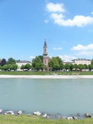 Keywords: evangelische christuskirche church of christ church neustadt city salzburg historic preservation unesco world heritage historic centre historically brick building jacob götz main portal page facade tower clock tower floor tower balcony bell floor tent roof protestant salzach austria