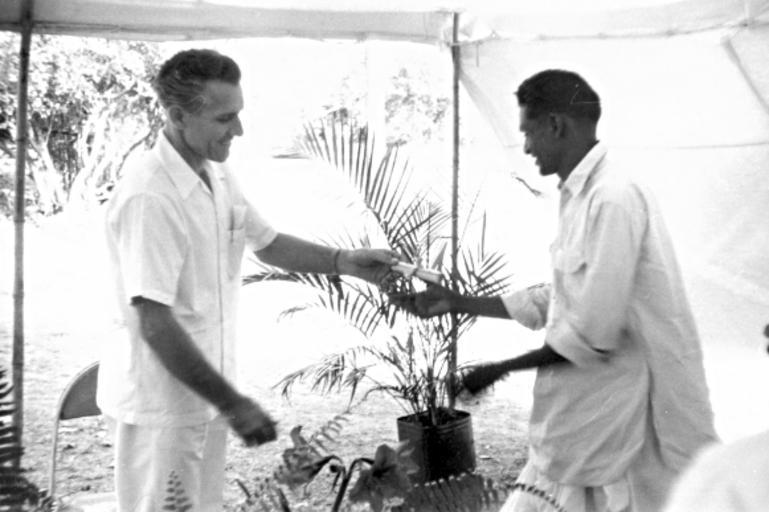 | Keywords: mennonite board of missions mennoniteboardofmissions india bihar evangelist kishore bakhla kishorebakhla diploma blackandwhite monochrome black and white Caption: Evangelist Kishore Bakhla receiving his diploma. Citation: Mennonite Board of Missions Photographs, 1898-1967. IV-10-007.2 Box 4 Folder 11. Mennonite Church USA Archives - Goshen. Goshen, Indiana. Caption: Evangelist Kishore Bakhla receiving his diploma. Citation: Mennonite Board of Missions Photographs, 1898-1967. IV-10-007.2 Box 4 Folder 11. Mennonite Church USA Archives - Goshen. Goshen, Indiana. |