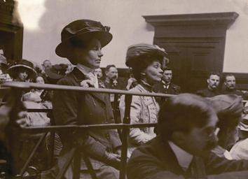 | Keywords: the women's library thewomenslibrary women suffrage politics hires 7JCC/O/02/058 Photograph, printed, paper, monochrome, Evelina Haverfield and Emmeline Pankhurst seated in the dock at Bow Street Magistrates' Court; printed inscription on reverse 'Illustrations Bureau, 12 Whitefriars St, EC' 7JCC/O/02/058 Photograph, printed, paper, monochrome, Evelina Haverfield and Emmeline Pankhurst seated in the dock at Bow Street Magistrates' Court; printed inscription on reverse 'Illustrations Bureau, 12 Whitefriars St, EC' |