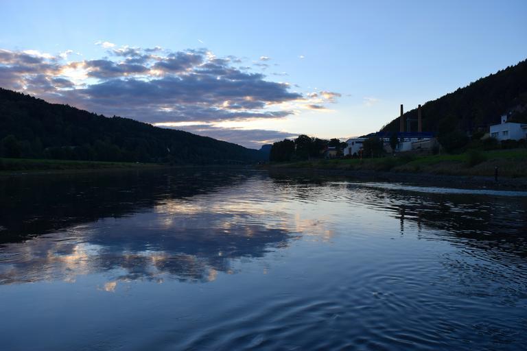 Keywords: evening elbe twilight mirroring romantic sunset bad schandau river idyll