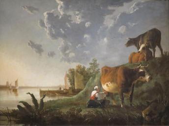 | Keywords: 'Evening in the Meadows' by Aelbert Cupy, Norton Simon Museum.JPG en Evening in the Meadows by Aelbert Cuyp mid-1650s oil on canvas Norton Simon Museum own Aelbert Cupy mid-1650s Dutch paintings in the Norton Simon Museum Cuyp Paintings of women with cattle Paintings with cattle by Aelbert Cuyp Women at work in art PD-old-100 |