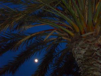 Keywords: evening night abendstimmung moon full moon light palm silhouette palm fronds sky