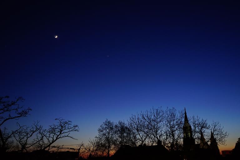 Keywords: evening sky night moon venus night sky star ulm ulm cathedral