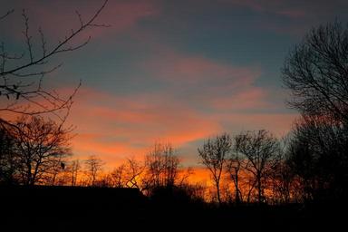 Keywords: evening sky sunset fiery afterglow clouds sky trees abendstimmung reddish
