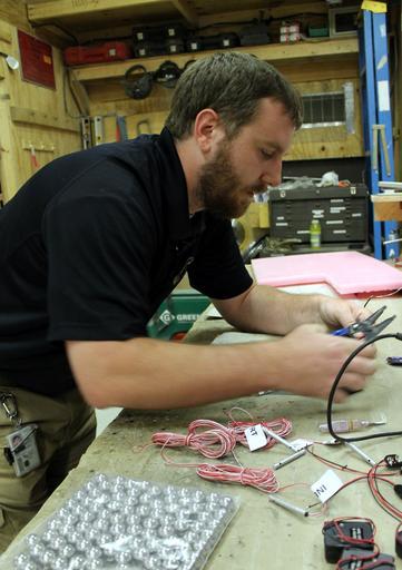 | Keywords: Everything but the ‘BOOM’ 130820-D-ZQ898-765.jpg en Combined Joint Task Force Paladin fabricator Trace Yates splices wires for an improvised explosive device pressure plate trigger training aid at the CJTF Paladin Fabrication Shop on Bagram Air Field Afghanistan Aug 20 The ball bearings and inert blasting caps are also used to replicate various IED devices found on the battlefield The fabrication shop has produced more than 17 000 training aids for use by warfighters throughout Afghanistan since 2009 Photo by Ed Drohan Combined Joint Task Force Paladin Public Affairs 2013-08-20 Ed Drohan https //www dvidshub net/image/1000519 130820-D-ZQ898-765 2013-08-22 01 59 BAGRAM AIR FIELD AF PD-USGov Bagram Air Base Combined Joint Task Force Paladin Images from DoD uploaded by Fæ |