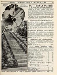 | Keywords: Everything for the garden (15768509794).jpg From FETEIR HBMDE3RSOH Q2L CO s MEW YOUH <br> 103 <br> HENDERSON'S <br> MAMMOTH <br> BUTTERFLY <br> PANSIES <br> HENDEKSON'S <br> MAMMOTH <br> BUTTERFLY PANSIES <br> The most varied and beautiful blend of mixed Pansies in the world <br> These Pansies we are very proud of We have sold them for a number of <br> years and receive hundreds of letters praising their superior beauty size and <br> other merits; they were awarded a medal at the Columbian Exposition <br> Chicago where they competed with the best from all over the world When <br> our unequalled collections of all types of Pansies are in bloom we go over them <br> daily and any plant producing flowers of superlative merit is removed to our <br> Mammoth Butterfly plot of Pansies where nothing but the largest hand- <br> somest and most perfect are allowed to remain Consequently the seed is saved <br> from the greatest varieties of types including only the best of Giant Cassiers <br> Bugnots Trimardeau 5-blotched Odier Giant English French and German <br> Hybrids etc resulting in the greatest variety of coloring marking blotching <br> veining etc for brilliant and attractive beds Seecut <br> Mixed Colors Per 1 000 seeds 75c Pkt 25c <br> My Butterfly Pansies from your seed are the admiration of all I never <br> saw their equal for size beauty variety of coloring and profusion of bloom ” – <br> and I have cultivated Pansies for twenty years <br> LILLY A TREAT Bridgewater Conn <br> Henderson's Giant Kuffled Pansies <br> A remarkable strain of Giant Pansies the flowers of which are so large and <br> full that the broad petals seem to be gathered to the stem causing them <br> to be undulated and fluted from center to circumference not unlike frilled <br> velvet The unusual substance of the flowers aided by these corrugations <br> thus enables them to present bold open and handsome faces even during <br> windy or dry summer weather when other Pansy flowers flop or wilt The <br> flowers are extraordinarily large and are borne on strong stems well above <br> the foliage; they are nearly all five-blotched on the Odier pattern and con- <br> tain rich combinations of coloring including some new tints and blendings not <br> met with in other Pansies The plants are vigorous and large and flower <br> abundantly <br> Mixed Colors Per 1 000 seeds 75c Pkt 25c <br> Henderson's Mammoth Parisian Pansies <br> The Parisian Pansies are distinguished by their magnificent and varied colors <br> and strong markings There is usually a large blotch on each of the five <br> petals with a surrounding band of some strikingly contrasting color over <br> all of which is thrown a cobweb-like netting of yet another hue The combi- <br> nations prevailing are composed of shades of cinnamon violet canary and <br> orange-yellow black garnet light blue indigo cream etc These Pansies have <br> been brought up to a high standard of excellence the flowers being of fine sub- <br> stance perfect shape and of mammoth size measuring when properly cultivated <br> four inches across A large number of these Pansies are also very fragrant <br> Mixed Colors Per 1 000 seeds 75c Pkt 25c <br> Henderson's Giant Mottled Pansies <br> A distinct new type of Pansies of greatest merit The flowers are of giant <br> size and are borne in profusion ” -well-grown they measure 3 to 3J inches <br> across ” -and of most gorgeous effects blotched spotted marbled veined <br> striped and blended colors passing through reds rose pink white purple <br> in beautiful and indescribable variegation These Pansies were awarded a prize <br> at the Paris Exposition <br> Mixed Colors Per 1 000 seeds 75c Pkt 25c <br> s „¢of NS Giant Trimardeau Pansies <br> Years of scientific culture hybridization and selection in raising Pansies <br> have gradually evolved a superior race of luxuriant robust growth and deep- <br> rooting drought-withstanding qualities; the flowers have also correspondingly <br> improved in size substance form and colors At first Hhere were only one <br> or two varieties in this class of Pansies but annually one or more varieties <br> would reach the goal of the Giants until now we have such a complete variety <br> of colors that we this season discard all ordinary-sized Pansies <br> Atropurpurea Velvety royal-purple Per 1 000 seeds 50c; Pkt <br> Canary Bird Pure spotless yellow 50c <br> Emperor William Indigo-blue blotched black 50c <br> Fire King Crimson-purple and golden-yellow 50c <br> King of the Blacks Lustrous jet-black 50c <br> Lord Beaconsfield Lavender heliotrope and purple 50c <br> Peacock Gloriosa Garnet cream and blue 50c <br> President Carnot White with large violet blotches 50c <br> Prince Bismarck Golden-bronze ' – 50c <br> Prince Charming Rose-pink veined rosy-lilac 50c <br> Snow Queen Spotless snow-white ' 50c <br> Striped White blue violet and chocolate 50c <br> Victoria Ox-blood red 50c <br> White Treasure White with three violet blotches 50c <br> Yellow Golden-yellow three maroon blotches 50c <br> Mixed Colors 50c <br> 10c <br> 10c <br> 10c <br> 10c <br> 10c <br> 10c <br> 10c <br> 10c <br> 10c <br> 10c <br> 10c <br> 10c <br> 10c <br> 10c <br> 10c <br> 10c <br> Henderson's Collection of 12 Giant Pansies <br> This collection contains one packet each of 12 of the largest and most beautiful <br> Pansies in cultivation Price 75c <br> Various Popular Strains of Pansies <br> German Finest mixed Per 1 000 seeds 50c; Pkt 5c <br> Belgian Fancy Mixed 60c; 15c <br> Cassier's 5 Blotched Odier Mixed 75c ; 25c <br> Bugnots' Large Stained French Mixed 75c; 25c <br> English Choicest Show Mixed 75c; 25c <br> Special Cultural Instructions for Pansies in Henderson's Garden Guide <br> free with orders <br> of 1 00 or over <br> See 2dpage <br> j _ cover 43874895 149634 78295 Page 103 Text http //www biodiversitylibrary org/page/43874895 c1915 10 5962/bhl title 78295 Henry G Gilbert Nursery and Seed Trade Catalog Collection ; Peter H