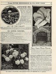 | Keywords: Everything for the garden (15768660244).jpg From PETER HEM»ERSON Q <br> JAPANESE IRIS <br> Iris Kaempferi Grandiflora The flowers <br> are from 6 to 8 inches across and of <br> indescribable shades the prevailing <br> colors being white crimson rose <br> lilac lavender violet and blue <br> Each flower usually contains <br> several shades while a golden- <br> yellow blotch surrounded by a <br> halo of blue or violet at base <br> of petals intensifies the color- <br> ing Perfectly hardy blooming <br> in June and July The named <br> varieties are splendid See cut <br> Doubled Flowered 25c each set <br> of 5 named sorts for 1 00 <br> Single Flowered 25c each set <br> of 5 named sorts for 1 00 <br> All colors mixed 15c each 1 50 <br> per doz 10 00 per 100 <br> IRIS GERMANICA Fleur de lis <br> The colors comprise yellows purples <br> blues claret-red white and bronze <br> marbled veined and striped 15c <br> each 1 50 per doz ; set of 12 fine <br> named varieties 1 50 <br> All colors mixed 10c each 1 00 per doz <br> 00 per 100 <br> LILY OF THE VALLEY <br> Clumps The well-known sort specially adapted for outdoor planting 30c each 3 00 per doz <br> Fortin's Giant Lily of the Valley This is the largest variety yet produced; when it gets well <br> established it produces wonderfully luxuriant foliage and immense spikes of purest white bells <br> twice the size of any other sort Price strong single crowns 5c each 50c per doz ; 3 50 per 100 <br> SIX SUPERB P/EONIES <br> Magnificent hardy plants almost rivaling the Rose in perfume and brilliancy of color The <br> roots we offer have four to six eyes <br> Asa Gray A very distinct flower bright Hlac sprinkled with minute dots of deeper lilac in such a <br> manner as to appear dusted on blooms very large mid-season <br> Couronne D'or Large flat rose type pure white with yellow stamens tipped carmine Medium <br> tall good free bloomer Late midseason <br> Duke of Wellington An ideal cut flower variety large well-formed flowers on long stiff stems; <br> color sulphur-white quite fragrant one of the finest mid-season sorts <br> Felix Crousse Medium to large globular typical globe-shaped bloom of very brilliant red <br> fragrant Strong vigorous grower medium height Midseason <br> L'Indispensabte Immense flowers of a delicate lilac pink with darker shading toward the center <br> Tall upright grower and profuse bloomer A very desirable late-flowering variety <br> Madam Forel Very large compact rose type bloom of violet with silver-tipped center fragrant <br> Medium strong tall grower Late midseason <br> Price 75c each 7 50 per doz Set of six Superb Paeonies for 4 00 <br> New Giant Moon Flower <br> Ipomea Maxima The flowers are more than twice the size of the old <br> variety selected flowers reaching 7 J inches and are produced in <br> such wonderful profusion that they completely cover the vine <br> with a veil of glistening white On moonlight nights and cloudy <br> days the effect is charming in the extreme It forms a perfect <br> screen of rich green foliage Add to these qualities its delightful <br> sweet magnolia fragrance and prosaic fact or poetic fancy could <br> not ask for more See cut Price 20c each 2 00 per doz <br> hardy double HERBACEOUS P/EONIES <br> Andre Lauries Deep bright red; fine for cutting Late <br> Chrysanthemiflora Rosea Rose-pink light shadings in the center <br> Delachei Meduim size fairly compact rose type bloom of violet <br> crimson Strong vigorous erect grower; late midseason <br> Due de Cazes Guard petals carmineJrose; center yellowish pink <br> Edulis Superba Large loose bloom of dark pink of even color flat <br> when fully open fragrant - Upright; strong growing plant Early <br> Festiva Maxima Snow-white with occasional small splashes of <br> carmine on center petals; enormous full double flowers; the <br> finest white; early See cut 60c each <br> Lady Bramwell A beautiful silvery rose of fine rorm Midseason <br> La Tulipe Lilac white with outer petals striped crimson fragrant; late <br> Louis Van Houtte Brilliant purplish-crimson; fine flower; late <br> Madam Calot _ Very large rose type very pale pink with center <br> darker silver tint very fragrant Tall strong upright; midseason <br> Queen Victoria Blush white guards center flesh white lightly <br> tipped red Early <br> Zoe Calot Delicate blush-white suffused w th rose <br> Price except where tioted 40c each 4 50 per doz ; set of 12 <br> 4 75 <br> NOTE ” In addition to the above we offer a fine selection without <br> names in special colors as iottows While Light Pink Rose Crimson <br> Purplish-Red White with Yellow Center selected from our choice col- <br> lection Price 30c each 3 00 per doz 20 00 per 100 <br> Our booklet on PLANTING AND CUTLIVATION OF P/EONIES free on application 43874959 149634 78295 Page 167 Text http //www biodiversitylibrary org/page/43874959 c1915 10 5962/bhl title 78295 Henry G Gilbert Nursery and Seed Trade Catalog Collection ; Peter Henderson Co Biodiversity Heritage Library Everything for the garden 1915 Garden Stories Books Bulbs Plants Catalogs Equipment and supplies Flowers Gardening Lawn mowers Seeds U S Department of Agriculture National Agricultural Library bhl page 43874959 dc identifier http //biodiversitylibrary org/page/43874959 bhlGardenStories BHLinbloom bulbs plants u s department of agriculture national agricultural library bhlgardenstories bhlinbloom Information field Flickr posted date ISOdate 2015-01-28 Check categories 2015 August 25 CC-BY-2 0 BioDivLibrary https //flickr com/photos/61021753 N02/15768660244 2015-08-25 03 01 46 cc-by-2 0 PD-old-70-1923 Everything for the garden 1915 Photos uploaded from Flickr by Fæ using a script |