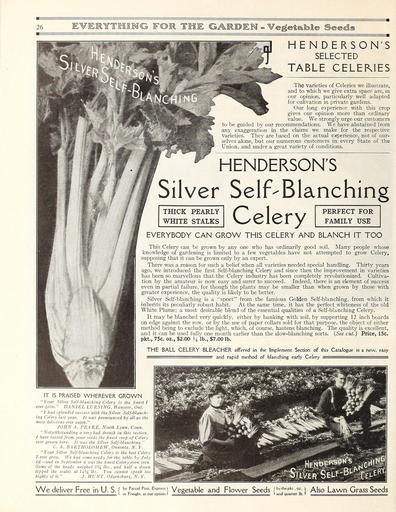 | Keywords: Everything for the garden (16203425320).jpg 26 <br> VBIRYTHUHG FOR TIE GA1R1EM - V©M©taIbl© Se© <br> HENDERSON'S <br> Silver Self-Blanching <br> HENDERSON'S <br> SELECTED <br> TABLE CELERIES <br> The varieties of Celeries we illustrate <br> and to which we give extra space are in <br> our opinion particularly well adapted <br> for cuhvation in private gardens <br> Our long experience with this crop <br> gives our opinion more than ordinary- <br> value We strongly urge our customers <br> to be guided by our recommendations We have abstained from <br> any 7 exaggeration in the claims we make for the respective <br> varieties They are based on the actual experience not of our- <br> selves alone but our numerous customers in every State of the <br> Union and under a great variety of conditions <br> Celery <br> PERFECT FOR <br> FAMILY USE <br> EVERYBODY CAN GROW THIS CELERY AND BLANCH IT TOO <br> This Celery can be grown by any one who has ordinarily good soil Many people whose <br> knowledge of gardening is limited to a few vegetables have not attempted to grow Celery <br> supposing that it can be grown only by an expert <br> There was a reason for such a belief when all varieties needed special handling Thirty years <br> ago we introduced the first Self-blanching Celery and since then the improvement in varieties <br> has been so marvellous that the Celery industry has been completely revolutionized Cultiva- <br> tion by the amateur is now easy and surer to succeed Indeed there is an element of success <br> even in partial failure for though the plants may be smaller than when grown by those with <br> greater experience the quality is likely to be better <br> Silver Self-blanching is a sport from the famious Golden Self-blanching from which it <br> inherits its peculiarly robust habit At the same time it has the perfect whiteness of the old <br> White Plume; a most desirable blend of the essential qualities of a Self-blanching Celery <br> It may be blanched very quickly either by banking with soil by supporting 12 inch boards <br> on edge against the row or by the use of paper collars sold for that purpose the object of either <br> method being to exclude the light which of course hastens blanching The quality is excellent <br> and it can be used fully one month earlier than the slow-blanching sorts See cut Price 15c <br> pkt 75c oz 2 00 J lb 7 00 lb <br> THE BALL CELERY BLEACHER offered in the Implement Section of this Catalogue is a new easy <br> ' and rapid method of blanching early Celery <br> IT IS PRAISED WHEREVER GROWN <br> Your Silver Self-blanching Celery is the finest I <br> ever grew DANIEL LUESING Hanover Onl <br> I had splendid success with the Silver Self-blanch- <br> ing Celery last year It was pronounced by all as the <br> most delicious ever eaten <br> JOHN A PEAKE North Lynn Conn <br> Notwithstanding a very bad drouth in this section <br> I have raised from your seeds the finest crop of Celery <br> ever grown here It was the Silver Self-blanching <br> C A BARTHOLOMEW Oneonta N Y <br> Your Silver Self-blanching Celery is the best Celery <br> I ever grew We had some ready for the table by July <br> 2d ” and in September it was the finest Celery even seen <br> Some of the heads weighed 3 lbs and half a dozen <br> tipped the scales at 14 lbs You cannot speak loo <br> highly of it J HUNT Odgensburg N Y <br> We deliver Free in U S by c f Post - Express Vegetable and Flower Seeds <br> - ' or rreight at our option <br> ' by thepkt oz <br> and quarter lb <br> Also Lawn Grass Seeds 43874818 149634 78295 Page 26 Text http //www biodiversitylibrary org/page/43874818 c1915 10 5962/bhl title 78295 Henry G Gilbert Nursery and Seed Trade Catalog Collection ; Peter Henderson Co Biodiversity Heritage Library Everything for the garden 1915 Garden Stories Books Bulbs Plants Catalogs Equipment and supplies Flowers Gardening Lawn mowers Seeds U S Department of Agriculture National Agricultural Library bhl page 43874818 dc identifier http //biodiversitylibrary org/page/43874818 bhlGardenStories BHLinbloom bulbs plants u s department of agriculture national agricultural library bhlgardenstories bhlinbloom Information field Flickr posted date ISOdate 2015-01-28 Check categories 2015 August 25 CC-BY-2 0 BioDivLibrary https //flickr com/photos/61021753 N02/16203425320 2015-08-25 03 00 39 cc-by-2 0 PD-old-70-1923 Everything for the garden 1915 Photos uploaded from Flickr by Fæ using a script |