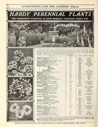 | Keywords: Everything for the garden (16203499628).jpg 174 <br> HARDY PERENNIAL PLANTS <br> FOR PERMANENT PLANTING IN OPEN BORDERS CEMETERY PLOTS ETC <br> – C nYejS8Ijrv Bells <br> This class of plants is fast attaining popularity and to meet the growing demand we offer this <br> choice selection of sorts which contains only such as exhibit the greatest contrast of color with profusion <br> of bloom They flower at different periods and vary in natural height Other hardy plants Chrysan- <br> themums Ferns Iris Lily of the Valley Paeonies Phloxes Pinks Violets etc are in this catalogue <br> see index NOTE ” Those marked are suitable for shady places <br> Varieties <br> Aconitum napellus Monkshood 20c <br> Achillea The Pearl <br> tomentosa Downy Yarrow <br> Aegopodium podograria var Bishops Weed <br> Ajuga reptans rubra Dark Foliage <br> Alstromeria Chiliensis Chilian Lily <br> Alyssum saxatile Golden Tuft <br> Anchusa Italica Dropmore variety 25c <br> Anemone Japonica alba <br> rubra <br> Whirlwind <br> Prince Henry <br> Pennsylvanica <br> Queen Charlotte <br> Anthemis tinctoria Yellow Chamomile <br> Anthericum St Bruno's Lily <br> Aquilegia Columbine <br> Arabis albida Rock Cress <br> Armeria maritima Sea pink <br> Artemisia abrotanum Old Man <br> Asclepias tuberosa Butterfly Flower <br> Aster Novae-Anglae New England Aster <br> rubra Rosy Aster <br> Baptisia Australis Blue False Indigo <br> Bocconia cordata Tree Calandine <br> Boltonia asteroides False Chamomile <br> latisquama <br> Callirhoe involucrata Creeping Mallow <br> Campanula Canterbury Bells <br> persicifolia Blue and white <br> carpatica Blue and white <br> Cassia Marilandica American Senna <br> Centranthus ruber Red Valerian <br> Chelone glabra alba 20c each <br> Clematis Davidiana Bush Clematis <br> recta Bush Clematis 25c <br> Coreopsis lanceolata <br> rosea Rosy Coreopsis <br> Delphinium chinensis Blue and whit' <br> formosum Blue Larkspur <br> hybridum <br> Desmodium penduliflorum 25c <br> Dianthus barbatus Sweet William 10c <br> Dicentra eximia Plumy Bleeding Heart <br> spectabilis Bleeding Heart 20c <br> Dictamnus fraxinella Gas Plant <br> alba <br> Digitalis Foxglove <br> Doronicum excelsum 20c each <br> Eringeum amaethystinum Sea Holly <br> Eupatorium ageratoides Snake Root <br> celestinum <br> Euphorbia corollata Flowering Spurge <br> Funkia undulata media <br> subcordata Day Lily 20c <br> Gaillardia grandiflora Aurora Flower <br> Geranium sanguinea Hardy Geranium <br> Height <br> Color <br> Time of Bloom <br> 3 ft <br> Blue <br> Sept <br> H <br> White <br> All Summer <br> l <br> Yellow <br> Summer <br> 6 in <br> Variegated <br> Foliage <br> 6 <br> Blue <br> Summer <br> 2 to 3 ft <br> Orange <br> All Season <br> 1 ft <br> Yellow <br> Early Spring <br> 4 <br> Blue <br> All Summer <br> 2 <br> White <br> Fall <br> 2 » <br> Red <br> <br> 2 <br> White <br> « <br> 2 <br> Pink <br> u <br> 1 <br> White <br> Spring <br> 2 <br> Pink <br> Aug to Nov <br> 1 <br> Yellow <br> July to Nov <br> 3 <br> White <br> Summer <br> 1 <br> Assorted <br> Early Summer <br> 6 in <br> White <br> May <br> 1 ft <br> Rose <br> Spring <br> 2 <br> Fragrant <br> Foliage <br> 2 <br> Orange <br> June <br> 3 <br> Purple <br> Fall <br> 3 <br> Rose <br> 3 to 5 ft <br> Blue <br> Early Summer <br> 6 ft <br> Cream <br> Summer <br> 4 <br> White <br> All Summer <br> 5 <br> Pink <br> All Season <br> 4 in <br> Crimson <br> u <br> 2 ft <br> Assorted <br> Early Summer <br> 2 <br> June and July <br> 8 in <br> ' Summer <br> 4 ft <br> Ye luw <br> July <br> 2 <br> Red <br> All Summer <br> 2 <br> White <br> Summer <br> 2 <br> Blue <br> u <br> 3 <br> White <br> June and July <br> H <br> Yellow <br> All Season <br> 1 <br> Rose <br> <br> H <br> Summer <br> 3 <br> Blue <br> All Summer <br> 2 <br> Assorted <br> Summer <br> 4 <br> Carmine <br> All Season <br> 1 <br> Assorted <br> Summer <br> 1 <br> Rose <br> u <br> 2 <br> Pink <br> Spring <br> 2 « <br> Red <br> Summer <br> 2 <br> White <br> u <br> 3 to 5 ft <br> Assorted <br> July and Aug <br> 2 ft <br> Orange <br> All Season <br> 2 <br> Blue <br> July Aug <br> 3 <br> White <br> Summer <br> 2 <br> Blue <br> <br> 1 <br> White <br> u <br> 2 <br> Variegated <br> Foliage <br> 9 u <br> White <br> Summer <br> U <br> Orange <br> June to Nov <br> 1J <br> Crimson <br> All Season <br> riced 15c each <br> SI 60 per doz <br> 10 00 per 100 <br> buyer's selection of varieties Our selection to be made when the order is being filled SI 00 per doz <br> S8 00 per 100 Note ” The heights given include the flower spikes <br> Hardy Perennial Plants continued on next page <br> SEND FOK OUR PLANTING MAP AND INSTRUCTIONS FOR FORMING A HARDY BORDER FREE TO ALL 43874966 149634 78295 Page 174 Text http //www biodiversitylibrary org/page/43874966 c1915 10 5962/bhl title 78295 Henry G Gilbert Nursery and Seed Trade Catalog Collection ; Peter Henderson Co NameFound ACHILLEA NameConfirmed Achillea EOLID 36945 NameBankID 2657276 NameFound Aconitum napellus NameConfirmed Aconitum napellus EOLID 596409 NameBankID 2645295 NameFound Aegopodium podograria NameConfirmed Aegopodium podograria EOLID 581940 NameFound Ajuga reptans rubra NameConfirmed Ajuga reptans EOLID 579637 NameBankID 2655092 NameFound Alstromeria NameFound Alyssum saxatile NameConfirmed Alyssum saxatile EOLID 11258677 NameBankID 2776536 NameFound Anchusa NameConfirmed Anchusa EOLID 70954 NameBankID 2654558 NameFound Anthemis tinctoria NameConfirmed Anthemis tinctoria EOLID 11262482 NameBankID 2657793 NameFound Anthericum NameConfirmed Anthericum EOLID 11384644 NameBankID 467340 NameFound Aquilegia NameConfirmed Aquilegia EOLID 11205314 NameBankID 2645540 NameFound Arabis albida NameConfirmed Arabis albida Stev EOLID 584162 NameFound Armeria maritima NameConfirmed Armeria maritima EOLID 585577 NameBankID 3873843 NameFound Artemisia abrotanum NameConfirmed Artemisia abrotanum EOLID 469705 NameBankID 2657291 NameFound Asclepias tuberosa NameConfirmed Asclepias tuberosa EOLID 11215101 NameB
