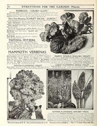 | Keywords: Everything for the garden (16204895729).jpg 170 EVERYTHING FOR THE GARDEN ” Plants <br> – IIIIIIIIIIIIUIllllllllllllllllillllllllH <br> RUDBECKIA GOLDEN GLOW <br> The most popular ever-blooming hardy plant grown Covered during the season with <br> masses of rich golden yellow double flowers resembling Chrysanthemums very closely <br> It attains a height of from 6 to 8 feet and a small plant set out in the spring will produce <br> hundreds of blossoms Price 15c each 1 50 per doz 10 00 per 100 <br> New Ever-Blooming SCARLET SALVIA ZURICH <br> From early summer until frost it is one continuous mass of the brightest scarlet imaginable <br> A dwarf compact grower and easily supersedes the older types <br> Salvia Tom Thumb This is of dwarf compact growth For <br> bedding it is unsurpassed planted alone or in front of taller Salvia <br> Salvia Splendens Scarlet Sage The standard tall growing <br> fiery scarlet variety <br> We also offer the following useful Salvias Bethelli Rich rose- <br> colored flowers Golden-Leaved Yellow foliage scarlet flowers <br> Mrs Mitchell Rich deep maroon Splendens Alba <br> Creamy-white <br> Price for the above Salvias 10c each 1 00 per doz <br> 6 00 per 100 <br> Salvia Patens Deep blue the finest color imaginable <br> Price 15c each 1 50 per doz <br> TRITOMA PFITZERII <br> An improved variety of the Red Hot Poker Plant ' ¢ <br> or Torch Lily It flowers continuously throughout <br> the season Large spikes of brilliant flame color rich yellow at base <br> with long stalks gracefully posed above the rich green foliage A bed <br> of this in bloom is a grand sight; a border of it around Cannas is admir- <br> able See cut Price 25c each 2 50 per doz <br> MAMMOTH VERBENAS <br> There are no plants for summer blooming more satisfactory than these <br> Specially suited for vases flower beds and borders See cut Antonio Deep blue <br> Beauty of Oxford Deep pink Berenice Rosy-pink dark center Climaxer <br> Extra fine scarlet Dawn Dark rich pink Gazelle Rich deep purple <br> Houri Pink yellow center Loadstar Lavender a rare color Mrs McKinley <br> Pure white Pres Harrison Scarlet deepening to magenta Sapphire Purple <br> large white eye Trilby Variegated red and white Price 10c each 1 00 <br> per doz 6 00 per 100 Set of 12 sorts for 1 00 <br> WINTER FLOWERING VIOLET <br> Marie Louise Grown by the million for cut-flowers Rich purple flowers; <br> fragrant large and double stems long Price 15c each 1 50 per doz <br> HARDY DOUBLE ENGLISH VIOLET <br> This violet is entirely hardy perfectly double a d-ep violet purple color <br> and most deliciously fragrant It is entirely free from disease of any kind <br> will grow and bloom in any garden and in any situation Nothing is more <br> appropriate for cemetery plots than the Hardy Double English Violet See <br> cut Price 30c each 3 00 per i'oz Young plants 20c each S2 00 per doz <br> LARGE FLOWERING SINGLE VIOLET <br> Princess of Wales A grand variety rich violet intensely fragrant 1st size <br> 20c each 2 00 per doz 2d size 10c e«ch SI 00 per doz <br> SUMMER FLOWERING SHRUBBY VINGA <br> Commonly known as Madagascar Periwinkle blooms all summer and is very showy; <br> one of the most useful and attractive plants for summer flower beds They grow about <br> ISinches high making handsome bushy plants which cover themselves with showy round <br> flowers \\ inches across on long stems The foliage is a dark glossy green very healthy <br> immune from insects and diseases We offer Rosea bright rose; Alba pure white; <br> Alba Rosea white with rose-colored center Price 10c each 1 00 per doz 6 00 per 100 <br> Received plants all O K they were not withered at all Am positive they will all live ” Mrs T T Smith Marysville Cal 43874962 149634 78295 Page 170 Text http //www biodiversitylibrary org/page/43874962 c1915 10 5962/bhl title 78295 Henry G Gilbert Nursery and Seed Trade Catalog Collection ; Peter Henderson Co NameFound Rudbeckia NameConfirmed Rudbeckia EOLID 37719 NameBankID 2658106 NameFound Salvia NameConfirmed Salvia L EOLID 38380 NameFound Splendens NameConfirmed SPLENDENS NameBankID 5329910 NameFound Tritoma NameConfirmed Tritoma EOLID 35048 NameBankID 4378253 NameFound Vinga NameConfirmed Vinga NameBankID 4391098 Biodiversity Heritage Library Everything for the garden 1915 Garden Stories Books Bulbs Plants Catalogs Equipment and supplies Flowers Gardening Lawn mowers Seeds U S Department of Agriculture National Agricultural Library bhl page 43874962 dc identifier http //biodiversitylibrary org/page/43874962 bhlGardenStories BHLinbloom bulbs plants u s department of agriculture national agricultural library bhlgardenstories bhlinbloom Information field Flickr posted date ISOdate 2015-01-28 Check categories 2015 August 25 CC-BY-2 0 BioDivLibrary https //flickr com/photos/61021753 N02/16204895729 2015-08-25 02 52 33 cc-by-2 0 PD-old-70-1923 Everything for the garden 1915 Photos uploaded from Flickr by Fæ using a script |