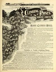 | Keywords: Everything for the garden (16234277003).jpg H ardy c limbing poses <br> Anna Maria Beautiful pale Rose deeper color in centre medium <br> size double and cupped A grand hardy climbing Rose for piazzas <br> Allister Stella Gray A new climbing Rose already known as <br> Golden Rambler It blooms in clusters straw color and orange- <br> J~l yellow and promises to become valuable <br> '~ Baltimore Belle Blush white very large clusters <br> r Climbing White Pet A strong-growing pure white Rose large <br> clusters of flowers Fit to rank with the Rambler Roses <br> Climbing 'Wootton Large deep crimson flowers richly perfumed It <br> is a very vigorous grower almost impervious to mildew ever-blooming <br> so that flowers may be expected from well-established plants throughout <br> the season Too much cannot be said in praise of this grand Rose <br> Dawson A fine hardy climbing Rose bright pink in clusters <br> Empress of China A very hardy free-flowering climbing Rose of <br> good size blooming in clusters bright pink flowers very attractive It <br> is practically ever-blooming as on good-sized plants when established <br> in the ground flowers may be expected the whole season <br> Gem of the Prairies Deep rosy carmine An old favorite <br> Royal Cluster A new climbing Rose blooming in large clusters; over one <br> hundred buds and flowers have been counted upon one cluster The color is <br> white occasionally tinted with blush It has a delightful spicy fragrance <br> Ruby Queen A new hardy climbing Rose of great value ; color deep ruby rose <br> full and double A very sti-ong healthy grower almost disease-proof <br> Price large plants 50c each S4 50 per doz ; small plants 3d size 10c each 1 00 <br> per doz Those marked can only be supplied in large plants <br> Noisette or Tender Climbing Roses <br> They may be kept outdoors in the <br> Grand Roses for the South where they are entirely hardy <br> North by laying them down and covering with leaves or litter <br> Carmine Pillar A large single Rose ; color a glowing carmine-pink Very fine and attractive <br> Climbing Niphetos A sport from the dwarf Niphetos It is a true climbing variety having <br> J ; I the same pure white long-pointed buds as its parent <br> -;/ Climbing Perle des Jardins The Climbing Perle is a fine yellow Rose For the South it will be <br> particularly valuable as it is entirely hardy there Next to M Niel the most valuable j'ellow Rose <br> Climbing Malmaison A sport from the well-known Souvenir de la Malmaison similar in flower <br> and foliage to its parent but of exceedingly robust climbing habit Very attractive and useful <br> Cloth of Gold Chromatella Deep yellow centre sulphur edges A well-known Southern favorite <br> Lamarque Pure white lemon-colored centre The finest white Well established in popular favor <br> Reine Marie Henriette Cherry red a beautiful lively shade Buds long and pointed <br> Setina Pink ; very hardy ; known also as Climbing Hermosa Originally introduced by Peter Henderson <br> Washington White Pure white flowers in clusters One of our most popular Roses <br> ' Price 1st size 50c 4 50 per doz ; 2d size 30c 3 00 per doz ; 3d size lOc 1 00 per doz <br> MAJIECHAL NIEL The immense size dark golden-yellow color of Marechal Niel is familiar to all Peerless <br> in color unexampled for size perfect in form after more than a quarter of a century it still remains the ideal climbing Tea <br> Rose Price 1st size plants 60c each 6 00 per doz ; 2d size 30c each 3 00 per doz ; young plants 10c each 1 00 per doz <br> OLOIRE DE DIJON Next to M Niel this is the finest pillar Rose for the greenhouse Very large double; rich creamy amber <br> color Perfectly hardy south of Washington and in sheltered situations it has survived the winters at New York Price 1st size <br> plants 60c each 6 00 per doz ; 2d size 30c each S3 00 per doz ; 3d size lOe each 1 00 per doz <br> NEW WHITE MARECHA L NIEL All who admire fine climbing Roses will hail with delight this grand addition to the list In <br> the South and on the Pacific slope it should find a home in every garden It is fully as vigorous as its parent the well-known farechal <br> Niel flowers of the same size shape and perfume but pure white Price 1st size 75c each ; 2d size 50c each ; 3d size 20c each <br> 2 00 per doz 42383222 133997 66553 Page 133 Text http //www biodiversitylibrary org/page/42383222 1902 10 5962/bhl title 66553 Henry G Gilbert Nursery and Seed Trade Catalog Collection ; Peter Henderson Co NameFound Chromatella NameConfirmed Chromatella NameBankID 4115396 NameFound Hermosa NameConfirmed Hermosa NameBankID 4192544 NameFound Setina NameConfirmed Setina EOLID 69963 NameBankID 3005818 Biodiversity Heritage Library Everything for the garden 1901 Garden Stories Catalogs Flowers Peter Henderson Co Plants Ornamental Seed industry and trade Seeds Trade catalogs U S Department of Agriculture National Agricultural Library bhl page 42383222 dc identifier http //biodiversitylibrary org/page/42383222 bhlGardenStories Climbing Roses BHLinbloom peter henderson co plants ornamental u s department of agriculture national agricultural library bhlgardenstories climbing roses bhlinbloom Information field Flickr posted date ISOdate 2015-03-18 Check categories 2015 August 24 CC-BY-2 0 BioDivLibrary https //flickr com/photos/61021753 N02/16234277003 2015-08-24 20 51 12 cc-by-2 0 PD-old-70-1923 climbing roses Everything for the garden 1902 Photos uploaded from Flickr by Fæ using a script |
