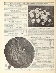 | Keywords: Everything for the garden (16365017036).jpg 120 <br> EVEJRYTHraQ FOR TIE GAEBEM F w©i Seeds <br> – IIIIIIIIUIIIIlllllllllllIIIIIIllllllllllllllllllllllilllllllllllllllllllllllM Illllllll lllllllllllllll llllllllll l lll Hill IIIIIIIIIIIIIIIIIIIIIIIIIIIIIIIIIIIIIIHIIIIIIIIIII <br> ANNUAL VALERIAN <br> Cenlranlhus Macrosiphon <br> This Annual Valerian is an attractive free-flowering class of garden <br> plants growing compact and bushy; about 1 foot high and bearing large <br> heads of red white or flesh-colored flowers <br> Mixed Colors Per 1 000 seeds 25c; Phi 5c <br> VINCA ROSEA <br> MADAGASCAR PERIWINKLE <br> Handsome bushy plants producing freely round single flowers lJ-£ inches <br> across suitable for either pot culture or sunny flower beds; tender perennial <br> but flowers the first season; 1H feet <br> Rosea Bright rose Per 1 000 seeds 40c; Pkt 10c <br> Rosea Alba White with rose eye 40c; 10c <br> Rosea Alba Pura Pure white 40c; 10c <br> Mixed Colors 35c; 10c <br> VISCARIA <br> Very showy and effective garden annuals ” producing freely throughout <br> the summer large single flowers 1 inches across ” splendid for beds and <br> massing and useful for cutting <br> Printz Snow-white flowers; 1 foot Pkt 10c <br> Fire King Vivid scarlet; 8 inches 10c <br> WALL FLO WE K <br> These old European favorites are not as much grown in this country as <br> they deserve These perennials make nice bushy plants 1H feet high <br> bearing in the spring long spikes of fragrant flowers of various colors <br> crimson purple yellow apricot mahogany pink etc <br> Large Double Mixed Colors Pkt 15c <br> Collection of 6 separate Double Wall Flowers 75c <br> Large Single Mixed Colors Pkt 10c <br> Extra-Early £ Wall Flower <br> These flower the first season from seed making compact branching plants <br> 8 to 10 inches in height covered with delightfully fragrant single flowers <br> Parisian Golden shaded orange-red Per 1 000 seeds 50c; Pkt 10c <br> Blood-red Red orange shaded blood-red ¢ 50c; 10c <br> Golden Gem Rich bright yellow 50c; 10c <br> White Gem Cream-white 50c; 10c <br> Mixed Colors 50c ; 10c <br> CHINESE WISTARIA <br> Of luxuriant and rapid growth bearing during the spring immense panicles <br> at blue flowers in great profusion; 75 feet Pkt 10c <br> M <br> 4 a <br> r \ <br> – 4HE <br> fk -- <br> H <br> 1 <br> 4 i <br> L A <br> J <br> – <br> Br <br> – m <br> 3 <br> – - – vi <br> – <br> f <br> W <br> ij <br> TUFTED OR <br> BEDDING <br> PANSY VIOLETS <br> This improved strain Viola cornuta arandifiora hybrida produces beautiful <br> Pansy-like blossoms 2 to 2J4 inches across of great substance and of most brilliant <br> colors including white lemon orange claret crimson maroon lavender purple <br> silver-gray rose black blue etc ; also fancy varieties tinted striped blotched <br> feathered picotee-edged etc The plants are hardy of vigorous growth forming <br> deep-rootmg compact tufted clumps Planted in masses or lines they form perfect <br> mats covered with myriads of flowers from spring until cold weather They are more <br> perennial in character than Pansies throwing out new roots annually adapting them <br> to permanent beds edgings etc Many of them are as highly scented as the sweetest <br> Violet See cut <br> Mixed Colors Pkt 25c <br> NEW GIANT ZINNIAS <br> Zinnia Elegans Robusla Plenissima <br> Flowers of gigantic size 4 to 6 inches across and densely double; plants of strong <br> luxuriant growth 2 4 to 3 feet in height See cut <br> White Snow-white Per 1 000 seeds 1 00; Pkt 15c <br> 15c <br> 15c <br> 15c <br> 15c <br> 15c <br> 15c <br> 15c <br> 15c <br> Scarlet Rich crimson-scarlet 1 6o'; <br> Crimson 1 00; <br> Purple 1 00; <br> Striped Gold and scarlet 1 00; <br> Golden-yellow Rich deep yellow 1 00; <br> Sulphur-yellow 1 00; <br> Violet 1 00; <br> Mixed Colors 75c; <br> Collection of above 8 Giant Zinnias SI 00 <br> New <br> Giant <br> Zinnia <br> Improved Dwarf Fio g Zinnias <br> These indispensable garden annuals are now greatly improved <br> The plants form handsome compact bushes 2 feet in height <br> with large perfectly-formed double flowers <br> Salmon-rose Per 1 000 seeds 40c; Pkt 10c <br> Crimson 40c ; 10c <br> Orange 40c ; 10c <br> Yellow 40c; 10c <br> White 40c ; 10c <br> Purple 40c; 10c <br> Mixed Colors Per oz 50c 30c ; 10c <br> Collection of above 6 separate Dwarf Large-flowering <br> Zinnias 50c <br> Green Gem New unique and novel; the double flowers <br> are of good size colored light green slightly shaded with <br> yellow Pkt 15c <br> Zebra Good large double flowers of perfect shape in <br> such colors as orange crimson pink yellow violet rose- <br> scarlet white etc most of which are striped spotted and <br> blotched with different shades hardly any two plants produc- <br> ing flowers alike <br> Mixed Colors Per 1 000 seeds 40c; Pkt 10c <br> LILLIPUT ZINNIAS <br> Uncommonly pretty small branching plants about 1 foot high <br> with small very double flowers in such profusion as to fairly envelope <br> the plants <br> Scarlet Gem Pkt 10c Golden Gem Pkt 10c <br> White Gem 10c Mixed Colors 10c <br> Haageana Perfection Most satisfactory garden annuals forming little <br> round compact bushes 9 inches high and producing from early summer <br> until frost multitudes of densely double little flowers about 1 inches across <br> of various colors including canary golden red-tipped cream purple rose <br> etc ; splendid for edgings low beds or pot culture s Pkt 10c <br> HENDERSON'S Choice Collections of Flower Seeds <br> offered on <br> page 75 <br> will furnish a Complete Garden Supply <br> at a saving of <br> study and cost 43874912 149634 78295 Page 120 Text http //www biodiversitylibrary org/page/43874912 c1915 10 5962/bhl title 78295 Henry G Gilbert Nursery and Seed Trade Catalog Collection ; Peter Henderson Co NameFound Elegans NameConfirmed Elegans NameBankID 5116399 NameFound Macrosiphon NameConfirmed MACROSIPHON EOLID 71984 NameBankID 34290