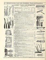 | Keywords: Everything for the garden (16389413001).jpg 192 EVEIRYTIHiraO FOBL THE GARDEM-T®© § aiad Re qtuisifces <br> XV <br> a GARDEN TOOLS AND REQUISITES <br> BRYANT'S PLANT PROTECTOR <br> WATER'S IMPROVED TREE PRUNER <br> HIGHEST QUALITY ONLY <br> Labels Wooden Garden labels are in packages of 100; pot <br> labels in packages of 1 000 <br> Garden 8 inches plain 0 45 per 100 ; painted per 100 <br> plant <br> Pot <br> Wired <br> 12 <br> « <br> « <br> 60 <br> 4 <br> a <br> <br> 75 <br> 5 <br> u <br> <br> 1 00 <br> 6 <br> <br> <br> 1 25 <br> 3i <br> <br> <br> 1 50 <br> 1 000; <br> 1 000 <br> nd tree <br> Mail weight <br> 60 2 lb <br> 75 <br> 90 <br> 1 25 <br> 1 50 <br> 1 75 <br> 3 lb <br> 4 lb <br> 4 lb <br> 5 ft <br> 4 Z6 <br> 3 50 <br> 90 <br> Glass Label Holder For permanent labeling 5c each 50c doz per 100 <br> All Proof-Zinc Name under glass suspending 3 in 65c doz ; 100 5 00 <br> Pot Labels 6 in long mail weight 5 lb 100 60c doz per 100' 4 50 <br> – Garden Labels 8 in long mail weight 7 lb 100 70c doz;per 100 5 50 <br> Label Holder Permanent Cast iron 7 j-inch prong to thrust in the ground <br> carrying an inclined removable 3x2 inch frame holding name card and <br> mica protector 20c each; per doz mail weight 4 lb doz 2 00 <br> Mole Trap The Henderson The best trap invented 1 35 <br> Oil for Lawn Mowers etc pint can with spout 25c each; per doz 2 50 <br> Pencils Label Pencils Black lead 5c each mailed free doz 50 <br> Peony Supports Heavy galvanized wire 75c each; doz 7 50 <br> Picks Clay Handled Light 4 to 5 lb 90c medium 6 to 7 lb 1 00 <br> Pick Mattock Handled 1 00 Axe Mattock Handled 1 35 <br> Plant Protectors Bryant's Wood bows covered with netting 18c each <br> 1 75 doz 12 00 hundred <br> Plant Supports of heavy galvanized steel wire; 2 ring extension 60c doz <br> 4 50 hundred; 3 ring extension 75c doz 5 00 hundred <br> Post Hole Digger Lock Lever 1 50 <br> Pruner Compound Lever The latest and best long handled pruner in- <br> volving new easy cutting principles With 10 ft handle 2 50; 12 ft <br> 2 65; 14 ft 2 80; 16 ft 3 00 <br> Pruner Waters Tree Cuts limbs up to -J inch in diameter; with four-foot <br> handle 65c; six-foot 75c; eight foot 80c; ten foot 85c; twelve-foot 90 <br> Telegraph Attaches to pole of any length operates with a cord spring <br> throws knife back mail weight 2 lb without pole 1 00 <br> Rakes Reversible Steel Lawn Rake with and without Teeth Cleaner <br> Heavily tinned steel teeth The arched teeth for leaves and litter and <br> the opposite side for fine cut grass Twenty-four teeth closely set in a 21- <br> inch head Price with handle 50c each; or with Teeth Cleaner ” and <br> extra iron bar ” perforated for teeth so it slides up and down quickly clean- <br> ing the rake when clogged 85c each <br> Wooden Lawn Rake Best selected three bow 24 teeth varnished head <br> Price 40c each 4 00 per dozen <br> Steel Garden Rakes 10 teeth 55c; 12 teeth 60c; 14 teeth 65c; 16 teeth <br> Fine Tooth Steel Gravel 16 teeth 75c ; 18 teeth <br> Steel Bow Garden Rake The best rake; does not break in middle 12 <br> teeth 75c; 14 teeth 80c; 16 teeth <br> Wooden Hay Rakes Best quality 12 teeth; 4 00 per doz each <br> « Lawn 24 4 00 each <br> Raphia 'for tying 15c lb ; lOlbs and over at 14c lb ; 100 lbs and over at 13c lb <br> Colored for basket making at 50c per lb <br> Rubber Plant Sprinkler mail weight 1 lb each <br> Straightneck 7 oz 75c; 12 oz <br> Angleneck 7 oz 80c; 12 oz <br> Rubber Putty Bulb for glazing mail weight 1 lb ' 1 00 <br> Rubber Aprons Gardner's heavy drill double rubber coated 3 ft 9 in by <br> 2 ft 9 in width mail weight 2 lb each 1 75 <br> Rubber Leggin-Rubbers Heavy duck double rubber coated to pull over <br> the shoes and trousers legs Give sizes of shoes; men's long mail weight ilbs 4 50 <br> men's short mail weight 3 lbs 3 50 <br> Saw ” Pruning Lightning Double-Edge 16 inch 70c; 18 inch 80c; 20 inch 90 <br> One-Edged Pruning 14 in 60c; 16inch 70c; 18 inch 80c; 20 inch 90 <br> Swivel Pruning can be swivelled in steel frame to cut in any position 1 50 <br> Little Giant Pruning Hook and Saw Combined Attaches to pole of any <br> Length mail weight 4 lb 1 75 <br> Pruning Saw and Chisel Combined mail weight 3 lb 1 25 <br> Wood or Buck Lightning Tooth Improved Frame 1 00 <br> Saw Buck Disston's improved pattern 50 <br> One-man Crosscut with supplementary handle Three feet 2 00; four <br> feet 2 50; five feet 3 25 for 2 men 3 50 <br> Saw Set Taintor's Positive will not slip mail weight 1 lb 90 <br> Scythe ” Lawn Imported English Riveted-Back Light and thin broad <br> blades strengthened by a riveted back 32 in 1 50; 34 in 1 60; <br> 36 in 1 75; 38 in 1 85 <br> Hollow Clipper Grass Best quality 32 inch 1 00; 34 inch 1 10; 36 inch <br> 1 15; 38 inch 1 25 <br> Weed and Bramble 1 25 Bush Scythe 1 15 <br> Scythe Snaths or Handles with patent fastening 1 00 <br> Scythe Stones Imported English Talacre 2 00 doz mail weight 3 lb each 20 <br> Red End flat stone 50c per doz mail weight 1 lb each 05 <br> Scythe Rifles Quadruple coated 1 25 doz mail weight 3 lb per doz each 12 <br> mailed 16c <br> Scissors Grape Thinning English For thinning grapes best steel mailed free 65 <br> Flower-Picking English Imported _ mailed free 75 <br> American Flower and Grape Gathering <br> Large and perfect; do not tire the hands mailed weight 1 lb 75 <br> Shears ” Lawn Shears For cutting grass under shrubs fences etc with two <br> wheels 9-inch blades 2 50 <br> Hedge Shears 8-in blades 1 10 with notch 1 35; 9-in blades 1 35 with <br> notch 1 60; 10-in blades 1 60 with notch 1 85 <br> Grass Edging or border shears For trimming overhanging grass around <br> edges of walks etc Price 9-in blades 2 00 or with wheel 2 35 <br> Pruning Solid Steel Leader 7 J- inch 85c; 8-J- inch 1 00; 9i inch 1 15 <br> XX Pruning The finest made detachable blade; ratchet nut 9-inch <br> 1 25; 10 inch mail weight 2 lb 1 50 <br> Pruning malleable with steel blade 8 inch 2 50 <br> Levin's Improv