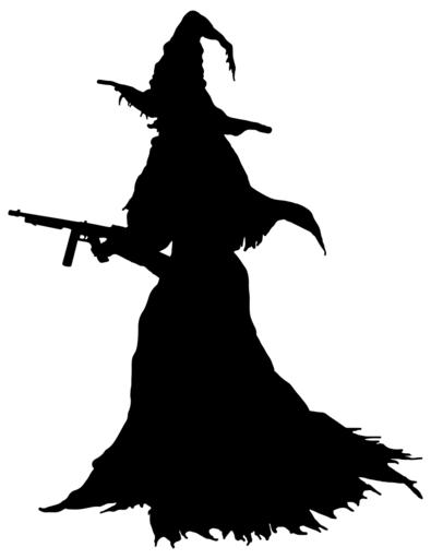 Keywords: evil halloween machine gun magic scary silhouette sorceress spooky witch