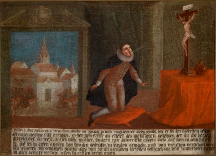 | Keywords: Ex voto- Cesar Ferdinand II. pri molitvi (1619).jpg unknown 1619 oil canvas cm 52 73 Institution National Museum of Slovenia http //www nms si/index php option com_content view category layout blog id 81 Itemid 27 lang en Zbirka slik Narodnega muzeja Slovenije PD-old-100 1619 paintings in Slovenia Paintings by unknown painters in Slovenia 17th-century paintings in the National Museum of Slovenia 17th-century oil on canvas paintings in Slovenia 17th-century religious paintings in Slovenia Ex-voto paintings in Slovenia Ferdinand II Holy Roman Emperor |