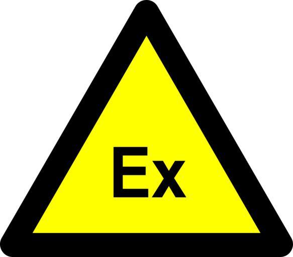 Keywords: Ex-zeichen.svg de Explosionsschutz EG Richtlinie 1999/92/EG Own 2012-12-10 Danh Mik81 de Benutzer Rasi57 Safety signs SVG safety symbols Explosion proof equipment Black and yellow triangular signs EX letter combinations