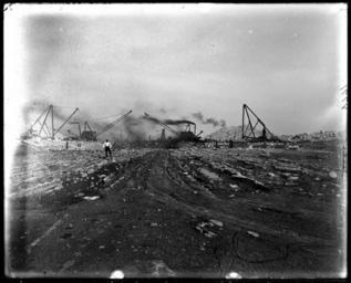 | Keywords: sanitary ship canal excavation illinois chicago drainage steam shovels steamshovels blackandwhite monochrome photo border outdoor black and white View of man [verify if O.C. Farrington] in distance and the excavation of the Chicago Drainage Canal with steam shovels, digging equipment and heavy machinery. Erosion of the surface of limestone. 1896. Original size and material: 8x10 inch glass negative Digital Identifier: CSGEO8771 Part of the Illinois Urban Landscapes Project: www.fieldmuseum.org/urbanlandscapes/ View of man [verify if O.C. Farrington] in distance and the excavation of the Chicago Drainage Canal with steam shovels, digging equipment and heavy machinery. Erosion of the surface of limestone. 1896. Original size and material: 8x10 inch glass negative Digital Identifier: CSGEO8771 Part of the Illinois Urban Landscapes Project: www.fieldmuseum.org/urbanlandscapes/ |