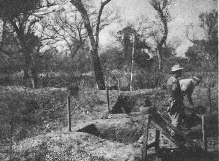 | Keywords: Excavations in sector M in km 75 Ruins.jpg Men working in the beginning of sector M excavation in Ruinas del Km 75 That work proved that this place correspond to the extint city of Concepción del Bermejo Hombres trabajando en el inicio de las excavaciones del sector M en las ruinas del kilómetro 75 El resultado de estas excavaciones serviría para demostrar que las ruinas correspondían a la extinta ciudad de Concepción del Bermejo 1585-1632 Photo published in Las Ruinas del Km 75 y Concepción del Bermejo by Eldo Morresi page 110 published in 1971 s 1960 Not mentioned in the book Published in Argentina more than 25 years ago PD-AR-Photo PD-1996 Concepción del Bermejo Archaeology in Argentina |