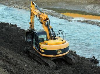 Keywords: excavator river torrent machinery earthmoving levee excavation tracked revolving