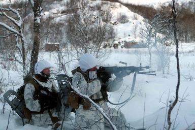 | Keywords: Exercise Cold Response 2010.jpg en Marines with 2nd Battalion 25th Regiment open fire upon a mock enemy force during a training raid March 3 2010 After nearly a month above the Arctic Circle Marines with the battalion are on their way home from Norway after completing Exercise Cold Response 2010 2010-03-08 http //www marines mil/unit/marforeur/PublishingImages/Cold 20Response jpg By Cpl Tyler J Hlavac PD-USGov Uploaded with UploadWizard Cold Response 2010 People of the United States Marine Corps |