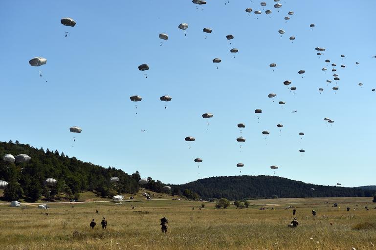 | Keywords: swift response swiftresponse parachutist air assault airassault hohenfels germany nato mons italy 2 para 2para wallanie belgium outdoor sky Multinational paratroopers descend in a massive landing in Hohenfels, Germany on Exercise Swift Response 2015 Over 5,000 personnel from 11 NATO countries are participating in Exercise Swift Response, the largest combined airborne training exercise in Europe since the end of the Cold War. The exercise is being held from 18th August to 12th Septemeber in Germany, Romania, Bulgaria and Italy and one of the major events featured over 1,000 multinational troops parachuting into a Drop Zone on a single day in Hohenfels, Bavaria. Multinational paratroopers descend in a massive landing in Hohenfels, Germany on Exercise Swift Response 2015 Over 5,000 personnel from 11 NATO countries are participating in Exercise Swift Response, the largest combined airborne training exercise in Europe since the end of the Cold War. The exercise is being held from 18th August to 12th Septemeber in Germany, Romania, Bulgaria and Italy and one of the major events featured over 1,000 multinational troops parachuting into a Drop Zone on a single day in Hohenfels, Bavaria. |