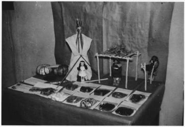 | Keywords: Exhibit at county achievement day - NARA - 285349.jpg Scope and content This exhibit of native Indian tools a model of a tepee and 3 dolls won a blue ribbon for the Shell Creek 4-H club at McLean County achievement day General notes 285349 Local identifier Department of the Interior Bureau of Indian Affairs Aberdeen Area Office Fort Berthold Agency 1949 NARA's Central Plains Region Kansas City NREA 400 West Pershing Road Kansas City MO 64108 1952 Record group Record Group 75 Records of the Bureau of Indian Affairs 1793 - 1999 Record group ARC 404 Fort Berthold Agency Photographs compiled 1900 - 1960 Series ARC 285302 File unit File unit ARC Variant control numbers NAIL Control Number NRE-75-FB PHO -481 Other versions <gallery> File Exhibit_at_county_achievement_day_-_NARA_-_285349 tif tif File Exhibit_at_county_achievement_day_-_NARA_-_285349 jpg jpg </gallery> NARA-cooperation PD-USGov 4-H McLean County North Dakota Native American crafts Black and white photographs |