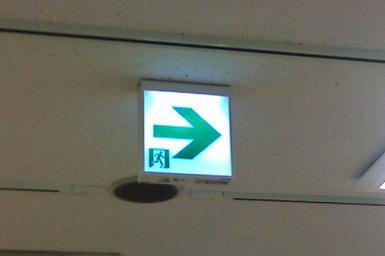 Keywords: Exit sign.jpg Exit sign 避難経路の標識4 Pieria Uploader and Photographer published on 5 May 2006 Pieria Uploader and Photographer Earthquakes in Japan Emergency exit signs in Japan Green on white exit signs