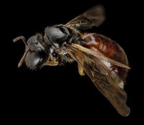 | Keywords: bee bees insect insects hymenoptera taxonomy:genus=exoneura biml usgsbiml droege apoidea apidae макросъемка makro マクロ природа natur 自然 الطبيعة 大自然 naturaleza natura насекомое insekt 自然الحشرة 昆蟲 insectos australia down under downunder oz black background animal macro Exoneura species, Two-tone Reed Bee, specimen collected in Australia Long: Reed Bees are found only on the continent of Australia and it is likely that most of the 41 species nest in the pithy centers of plant stems, similar to the Small Carpenter Bees (Ceratina). These bees have a unique method of childcare: rather than constructing individual cells for their young, they dispense with internal walls and make a crèche. They excavate the pith in the stem, add pollen and nectar, and then lay eggs over time. Thus, within a nest there can be bee juveniles at all stages of development, from egg to adult sometimes several adults. These groups of females can all be reproductive but often just the dominant female produces eggs. This dominant female can produce pheromones that keep the ovaries of subdominant females from developing. The home life of these bees is complex but flexible such that working positions within the colony and reproduction can change with the seasons and availability of pollen and nectar. Perhaps because all the larvae are together within the nest burrow rather than in their own individual little rooms, their morphology is more complex and variable than is the case for larvae of other bees. Most bee larvae are simple grubs lacking legs and mostly bald. Reed bee infants often have fleshy lobes and interesting hair patterns on their bodies, some even looking as if they have a Beatle’s moptop cut. ~~~~~~~~~~{{{{{{0}}}}}}~~~~~~~~~~ All photographs are public domain, feel free to download and use as you wish. Photography Information: Canon Mark II 5D, Zerene Stacker, Stackshot Sled, 65mm Canon MP-E 1-5X macro lens, Twin Macro Flash in Styrofoam Cooler, F5.0, ISO 100, Shutter Speed 200 Further in Summer than the Birds Pathetic from the Grass A minor Nation celebrates Its unobtrusive Mass. No Ordinance be seen So gradual the Grace A pensive Custom it becomes Enlarging Loneliness. Antiquest felt at Noon When August burning low Arise this spectral Canticle Repose to typify Remit as yet no Grace No Furrow on the Glow Yet a Druidic Difference Enhances Nature now -- Emily Dickinson Want some Useful Links to the Techniques We Use? Well now here you go Citizen: Basic USGSBIML set up: www.youtube.com/watch?v=S-_yvIsucOY USGSBIML Photoshopping Technique: Note that we now have added using the burn tool at 50% opacity set to shadows to clean up the halos that bleed into the black background from "hot" color sections of the picture. www.youtube.com/watch?v=Bdmx_8zqvN4 PDF of Basic USGSBIML Photography Set Up: ftp://ftpext.usgs.gov/pub/er/md/laurel/Droege/How%20to%20Take%20MacroPhotographs%20of%20Insects%20BIML%20Lab2.pdf Google Hangout Demonstration of Techniques: plus.google.com/events/c5569losvskrv2nu606ltof8odo or www.youtube.com/watch?v=4c15neFttoU Excellent Technical Form on Stacking: www.photomacrography.net/ Contact information: Sam Droege sdroege@usgs.gov 301 497 5840 Exoneura species, Two-tone Reed Bee, specimen collected in Australia Long: Reed Bees are found only on the continent of Australia and it is likely that most of the 41 species nest in the pithy centers of plant stems, similar to the Small Carpenter Bees (Ceratina). These bees have a unique method of childcare: rather than constructing individual cells for their young, they dispense with internal walls and make a crèche. They excavate the pith in the stem, add pollen and nectar, and then lay eggs over time. Thus, within a nest there can be bee juveniles at all stages of development, from egg to adult sometimes several adults. These groups of females can all be reproductive but often just the dominant female produces eggs. This dominant female can produce pheromones that keep the ovaries of subdominant females from developing. The home life of these bees is complex but flexible such that working positions within the colony and reproduction can change with the seasons and availability of pollen and nectar. Perhaps because all the larvae are together within the nest burrow rather than in their own individual little rooms, their morphology is more complex and variable than is the case for larvae of other bees. Most bee larvae are simple grubs lacking legs and mostly bald. Reed bee infants often have fleshy lobes and interesting hair patterns on their bodies, some even looking as if they have a Beatle’s moptop cut. ~~~~~~~~~~{{{{{{0}}}}}}~~~~~~~~~~ All photographs are public domain, feel free to download and use as you wish. Photography Information: Canon Mark II 5D, Zerene Stacker, Stackshot Sled, 65mm Canon MP-E 1-5X macro lens, Twin Macro Flash in Styrofoam Cooler, F5.0, ISO 100, Shutter Speed 200 Further in Summer than the Birds Pathetic from the Grass A minor Nation celebrates Its unobtrusive Mass. No Ordinance be seen So gradual the Grace A pensive Custom it becomes Enlarging Loneliness. Antiquest felt at Noon When August burning low Arise this spectral Canticle Repose to typify Remit as yet no Grace No Furrow on the Glow Yet a Druidic Difference Enhances Nature now -- Emily Dickinson Want some Useful Links to the Techniques We Use? Well now here you go Citizen: Basic USGSBIML set up: www.youtube.com/watch?v=S-_yvIsucOY USGSBIML Photoshopping Technique: Note that we now have added using the burn tool at 50% opacity set to shadows to clean up the halos that bleed into the black background from "hot" color sections of the picture. www.youtube.com/watch?v=Bdmx_8zqvN4 PDF of Basic USGSBIML Photography Set Up: ftp://ftpext.usgs.gov/pub/er/md/laurel/Droege/How%20to%20Take%20MacroPhotographs%20of%20Insects%20BIML%20Lab2.pdf Google Hangout Demonstration of Techniques: plus.google.com/eve