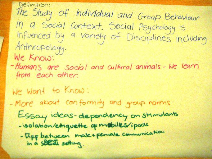 Keywords: Exploring Social Psychology.jpg Student-written notes from an introductory university tutorial about social psychology Centre for Applied Psychology University of Canberra Australia own 2008-07-29 User Jtneill Social psychology psychology