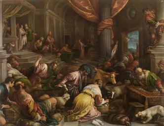 | Keywords: Expulsión de los mercaderes del Templo, de Francesco Bassano (Museo del Prado).jpg La obra representa el momento en que Jesucristo encolerizado expulsó a los mercaderes del Templo de Jerusalén ~ 1585 oil on canvas Size cm 184 150 Institution Museo del Prado https //www museodelprado es/coleccion/obra-de-arte/expulsion-de-los-mercaderes-del-templo/81c8dc1e-f1ba-4a15-81fe-d450a29aaea8 accession number P00027 https //www museodelprado es/coleccion/obra-de-arte/expulsion-de-los-mercaderes-del-templo/81c8dc1e-f1ba-4a15-81fe-d450a29aaea8 PD-old-100 Paintings of the Cleansing of the Temple in Spain 16th-century paintings of the Cleansing of the Temple Paintings by Francesco Bassano the Younger in the Prado Museum 16th-century paintings in the Prado Museum 1580s paintings in Spain |