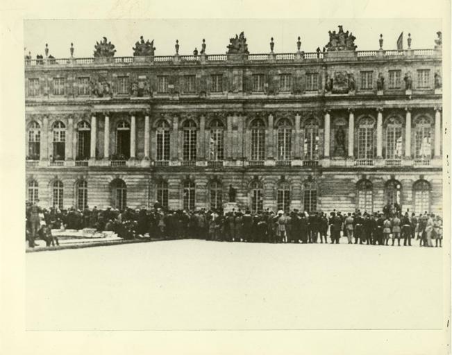 | Keywords: versailles palace peace treaty monochrome building architecture outdoor Local Accession Number: 207 Description: Exterior, medium-range shot of the Versailles palace. Photographer: Unknown Source: Research Library, 20th Century Fox Size: 8x10 Medium: Print, Black and White Date: 1919 Local Accession Number: 207 Description: Exterior, medium-range shot of the Versailles palace. Photographer: Unknown Source: Research Library, 20th Century Fox Size: 8x10 Medium: Print, Black and White Date: 1919 |
