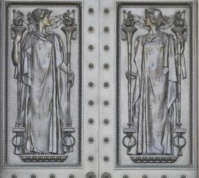 | Keywords: Exterior view. Detail of central main entrance door, the Art of Printing, with women representing the Humanities (left) and Intellect (right), by Frederick Macmonnies. Library of Congress Thomas LCCN2007687148.tif 1 photograph digital TIFF file color Notes Forms part of the Library of Congress Series in the Carol M Highsmith Archive ; Title devised by Library staff 2007 Creator Carol M Highsmith Library of Congress Catalog http //lccn loc gov/2007687148 Image download https //cdn loc gov/master/pnp/highsm/03100/03148a tif Original url http //hdl loc gov/loc pnp/highsm 03148 No known restrictions on publication LOC-image highsm 03148 PD-Highsmith Images uploaded by Fæ Photographs by Carol M Highsmith |