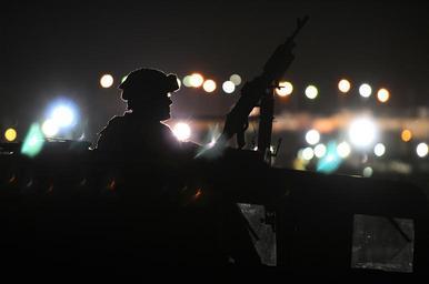 | Keywords: External Security Patrols Joint Task Force Guantanamo at Night DVIDS316510.jpg en Army Spc Thomas Salisbury with the Rhode Island Army National Guard ™s 115th Military Police Company is silhouetted by the lights of Joint Task Force Guantanamo during a routine patrol Sept 2 2010 The National Guard unit is here on a year-long deployment providing security at Joint Task Force Guantanamo 2010-09-02 Petty Officer 3rd Class Joshua Nistas https //www dvidshub net/image/316510 100902-N-+++++-119 2010-09-08 12 27 GUANTANAMO BAY CU PD-USGov-Military-Navy Joint Task Force Guantanamo Guantanamo Bay Images from DoD uploaded by Fæ |