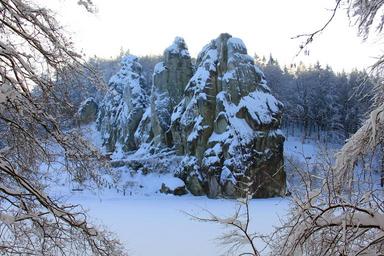 Keywords: externsteine rock teutoburg forest mystical stones winter snow