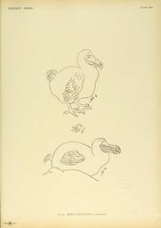 | Keywords: Extinctbirds1907 P24A Didus cucullatus0331.png en The dodo Raphus cucullatus was a flightless bird endemic to the Indian Ocean island of Mauritius Fig 1 Reproduction in outline of the Dodo in Savery's Orpheus at Haag Vide antea No 7 in the List of Paintings Fig 2 Outline of Dodo and Pelican in Ruthart's Circe and Ulysses at Dresden Vide antea No 13 in the List of Paintings Fig 3 Outline of Dodo and Pelican J in Frans Franckens picture in Dresden Vide antea No 14 in the List of Paintings Extinct birds an attempt to unite in one volume a short account of those birds which have become extinct in historical times that is within the last six or seven hundred years to which are added a few which still exist but are on the verge of extinction By Lionel Walter Rothschild 2nd Baron Rothschild 8 February 1868 “ 27 August 1937 http //www archive org/details/extinctbirdsatte00roth Unknown Book Lionel Walter Rothschild 1907 Not in copyright Public Domain Original PD-old Extinct Birds Rothschild book 24a Raphus cucullatus in art |