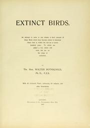 | Keywords: ExtinctBirds1907.png en Extinct Birds is a book by Walter Rothschild which covers globally extinct and rare birds as well as bird taxa which existence are only based on written or oral reports Extinct birds an attempt to unite in one volume a short account of those birds which have become extinct in historical times that is within the last six or seven hundred years to which are added a few which still exist but are on the verge of extinction By Lionel Walter Rothschild 2nd Baron Rothschild 8 February 1868 “ 27 August 1937 http //www archive org/details/extinctbirdsatte00roth Lionel Walter Rothschild 2nd Baron Rothschild 8 February 1868 “ 27 August 1937 1907 Not in copyright Public Domain Original PD-Art Extinct Birds Rothschild book |