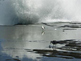 | Keywords: ExtremeFishing.jpg Kelp Gulls eating fish on the edge of a rock shelf with the sea breaking high above them all of that reflected in the still pool of water on the shelf one seagull running from the exploding water another calmly pecking at a fish head Muriwai New Zealand Source Own work see Paul Moss wp gallery Creation Date 20th April 2006 11 44am Author Paul Moss see Paul Moss wp user page Permission Own work all rights released Public Domain see tag Other versions A much smaller file size is used on the wikipedia site Muriwai New Zealand 2006-04-20 own assumed Mozasaur~commonswiki Larus dominicanus Laridae eating 1280x960 |