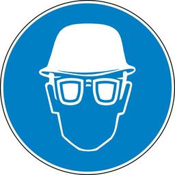 Keywords: eye protection head protection safety glasses goggles helmet blue sign symbol icon
