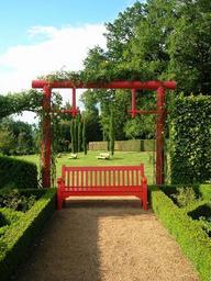 Keywords: eyrignac manor gardens dordogne france summer spring trees plants foliage flowers nature outside sky clouds destinations landmark bench