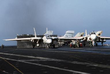| Keywords: F-14A KA-6D on cat USS America (CV-66) 1986.JPEG A U S Navy Grumman F-14A Tomcat aircraft from fighter squadron VF-33 Starfighters left and a Grumman KA-6D Intruder aircraft from attack squadron VA-34 Blue Blasters prepare to take off the aircraft carrier USS America CV-66 during flight operations off the coast of Libya on 17 April 1986 A Grumman EA-6B Prowler from Marine tactical electronic warfare squadron VMAQ-2 Det Y Playboys is visible in the background The aircraft were assigned to Carrier Air Wing 1 CVW-1 aboard the America for a deployment to the Mediterranean Sea from 10 March to 15 September 1986 On 15 April 1986 America´s aircraft participated in Operation El Dorado Canyon the bombing of Libya U S DefenseImagery http //www defenseimagery mil photo VIRIN DN-ST-86-10023 http //www dodmedia osd mil/DVIC_View/Still_Details cfm SDAN DNST8610023 JPGPath /Assets/1986/Navy/DN-ST-86-10023 JPG 1986-04-17 PHAN David Casper USN PD-USGov-Military-Navy F-14A Tomcat on flight decks KA-6D Intruder Fighter Squadron 33 United States Navy Attack Squadron 34 United States Navy Operation El Dorado Canyon Aboard USS America CV-66 Marine Tactical Electronic Warfare Squadron 2 F-14 Tomcat aircraft carrier launches EA-6B Prowler US Marine Corps |