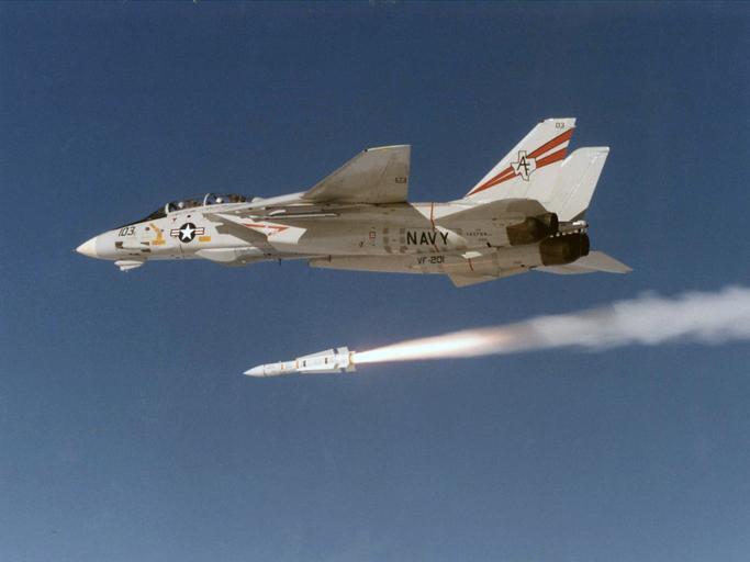 | Keywords: F-14A Tomcat of VF-201 fires AIM-54 in 1987.jpg A U S Navy Reserve Grumman F-14A-140-GR Tomcat BuNo 162709 from Fighter Squadron 201 VF-201 Hunters fires an AIM-54 Phoenix missile in August 1987 This marked the first live AIM-54 shot by a U S Naval Reserve squadron VF-201 transitioned to the F-14 in 1987 and received the last-built F-14As http //collections naval aviation museum/emuwebdoncoms/pages/doncoms/AdvQuery php U S Navy National Museum of Naval Aviation photo No http //collections naval aviation museum/emuwebdoncoms/pages/doncoms/Display php irn 32047 QueryPage 2Femuwebdoncoms 2Fpages 2Fdoncoms 2FAdvQuery php 1996 488 256 003 1987-08 U S Navy PD-USGov-Military-Navy F-14A Tomcat in flight Launches of AIM-54 Phoenix missiles Fighter Squadron 201 United States Navy |