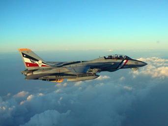 | Keywords: F-14D VF-2 Bounty Hunters in flight 2002.JPG A U S Navy Grumman F-14D-165-GR Tomcat BuNo 163894 from fighter squadron VF-2 Bounty Hunters in flight in 2002 VF-2 made its last deployment with the F-14 assigned to Carrier Air Wing 2 CVW-2 aboard the aircraft USS Constellation CV-64 from 2 November 2002 to 2 June 2003 Strike Fighter Squadron 2 website http //vfa-2 ahf nmci navy mil/photo html photo http //vfa-2 ahf nmci navy mil/images/gallery/d04 JPG 2002-12-18 USN PD-USGov-Military-Navy F-14D Tomcat in flight Aerial photographs of F-14 Tomcat in flight Fighter Squadron 2 United States Navy Strike Fighter Squadron 2 United States Navy |