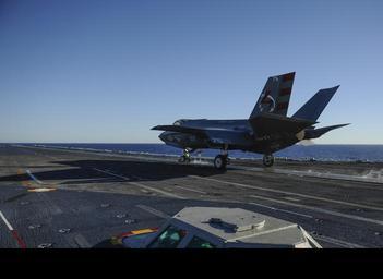 | Keywords: F-35C Lightning II conducts 1st carrier launch 141104-N-WM477-124.jpg en An F-35C Lightning II carrier variant joint strike fighter launches for the first time from the flight deck of the aircraft carrier USS Nimitz CVN 68 The F-35 Lightning II Pax River Integrated Test Force from Air Test and Evaluation Squadron VX 23 is conducting initial at-sea trials aboard Nimitz U S Navy photo by Mass Communication Specialist 3rd Class Aiyana S Paschal/Released 2014-11-04 Petty Officer 3rd Class Aiyana Paschal https //www dvidshub net/image/1645265 141104-N-WM477-124 2014-11-05 21 05 USS NIMITZ AT SEA PD-USGov-Military-Navy F-35C Lightning II aircraft carrier launches USS Nimitz CVN-68 Images from DoD uploaded by Fæ |