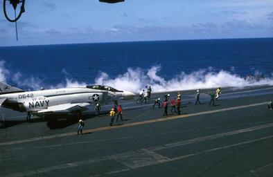 | Keywords: F-4G VF-213 CVA-63 1966.jpg A McDonnell F-4G Phantom II BuNo 150642 of fighter squadron VF-213 Black Lions about to be launched from the aircraft carrier USS Kitty Hawk CVA-63 in 1966 The Phantom is one of the short-lived USN-F-4Gs 12 were converted from F-4Bs with AN/ASW-12 two-way datalink communication system and approach power compensator which coupled with the shipboard AN/SPN-10 radar and AN/USC-1 datalink allowed hands-off carrier landings All surviving F-4Gs were rebuilt as F-4Bs in October 1966 one had been shot down over Vietnam The designation F-4G was later used for USAF Wild Weasel conversions of F-4Es http //vf-114 org/Photos/ 1966 USN PD-USGov-Military-Navy F-4G Phantom II US Navy version Fighter Squadron 213 United States Navy |