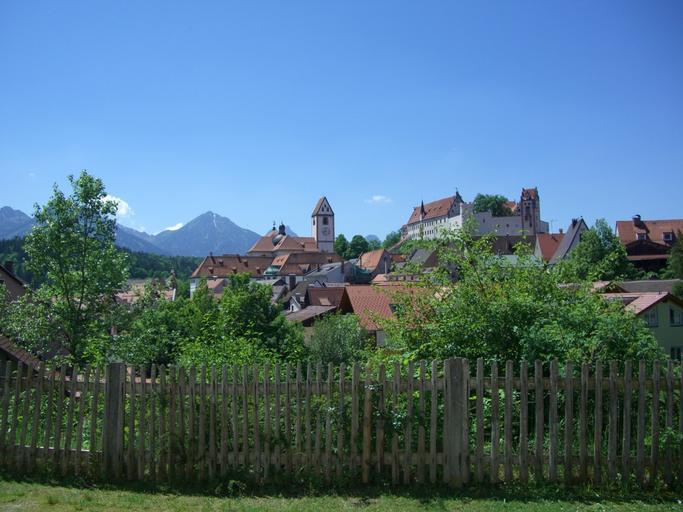 Keywords: füssen old town fenced church st mang high castle mountains sky blue
