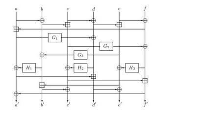 Keywords: F-function.jpg diagram en F-function of the Dragon Cipher 2011-10-28 own Alex golenev cc-zero Uploaded with UploadWizard Cryptography diagrams