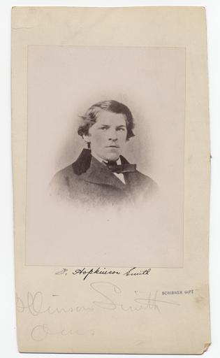 | Keywords: smithsonian institution smithsonianinstitution portrait f. hopkinson smith fhopkinsonsmith 1838-1915 18381915 engineer artist illustrator writer sepia young man youngman message large frame largeframe vignette suit bowtie writing penmanship handwritten handwriting archives of american art archivesofamericanart Description: Portrait of Smith as a young man. Identification on front (handwritten): F. Hopkinson Smith.  Creator/Photographer: Unidentified photographer  Medium: Black and white photographic print  Dimensions: 15 cm x 11 cm  Date: c. 1860  Collection: Charles Scribner's Sons Art Reference Department Records, c. 1865-1957  Persistent URL: www.aaa.si.edu/collections/images/detail/f-hopkinson-smit...  Repository: Archives of American Art  Accession number: aaa_charscrs_4368 Description: Portrait of Smith as a young man. Identification on front (handwritten): F. Hopkinson Smith.  Creator/Photographer: Unidentified photographer  Medium: Black and white photographic print  Dimensions: 15 cm x 11 cm  Date: c. 1860  Collection: Charles Scribner's Sons Art Reference Department Records, c. 1865-1957  Persistent URL: www.aaa.si.edu/collections/images/detail/f-hopkinson-smit...  Repository: Archives of American Art  Accession number: aaa_charscrs_4368  |