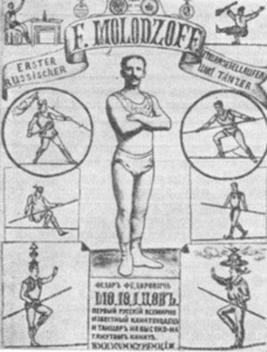 Keywords: F. Molodzoff.jpg ru Фёдо олодцов 1855 1919 один из наиболее известных канатоходцев конца XIX века http //www ruscircus ru/referat/kiselev shtml Author Конец XIX века Circus performers PD-old
