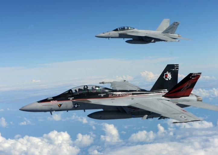 Keywords: FA-18F VFA-154 CAG bird during RIMPAC 2010.JPG Two U S Navy Boeing F/A-18F Super Hornet aircraft from Strike Fighter Squadron VFA-154 Black Knights prepare to move into formation after receiving fuel from an U S Air Force KC-135R Stratotanker aircraft assigned to the 465th Air Refueling Squadron 507th Air Refueling Wing out of Tinker Air Force Base Oklahoma on 20 July 2010 near Joint Base Pearl Harbor-Hickam Hawaii during the Rim of the Pacific RIMPAC VFA-154 was assigned to Carrier Air Wing 14 CVW-14 aboard the aircraft carrier USS Ronald Reagan CVN-76 The aircraft in front is the personal aircraft of the commander of CVW-14 CAG http //www defenseimagery mil U S DefenseImagery photo VIRIN http //www defenseimagery mil/imagery html guid f9205829dfd4031612d10462b1e8e54a5a970393 100720-F-LX971-258 2010-07-20 U S Air Force photo Tech Sgt Cohen A Young PD-USGov-Military-Navy F/A-18F Super Hornet in flight Strike Fighter Squadron 154 United States Navy United States Navy air group commander aircraft RIMPAC 2010 |